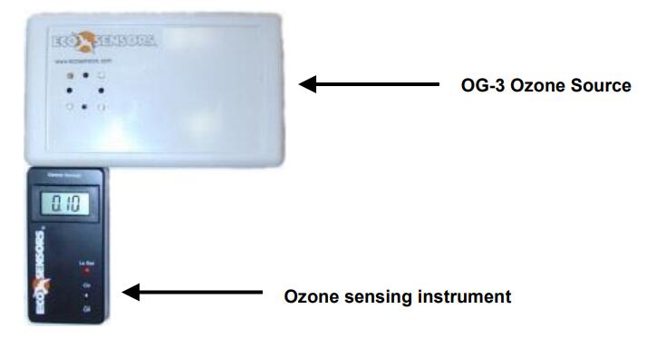 讓OG-3和臭氧傳感儀器都預熱至少30分鐘(斷開連接并分開至少12英寸)。