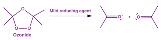 在此,臭氧化物用溫和的還原劑如二甲基硫醚和金屬鋅用水處理。 臭氧化物被還原,如下所示。