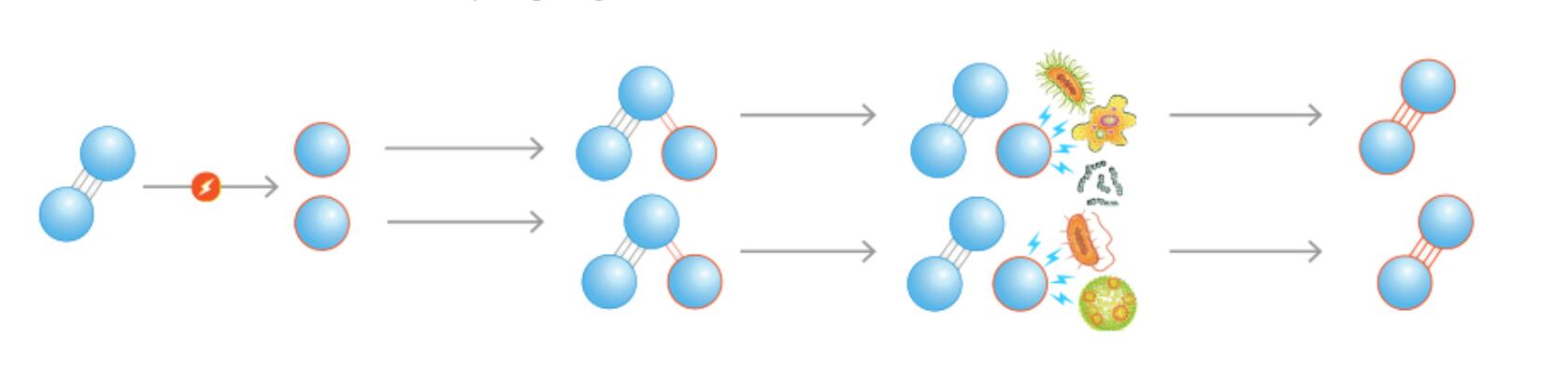 臭氧發(fā)生器使用光能或電能以及來(lái)自周圍空氣的氧氣。當(dāng)添加這種能量時(shí),常規(guī)氧分子(O 2)分裂成兩個(gè)單獨(dú)的原子(O 1)。然后O 1原子與其他氧分子(O 2)結(jié)合,產(chǎn)生O 3。光能與電能產(chǎn)生的臭氧之間的區(qū)別是數(shù)量 - 發(fā)電產(chǎn)生更高的臭氧輸出。當(dāng)溶解在水中時(shí),臭氧會(huì)殺死病原體和微生物,破壞有機(jī)物和無(wú)機(jī)物,并且還會(huì)通過(guò)氧化分解氯胺。